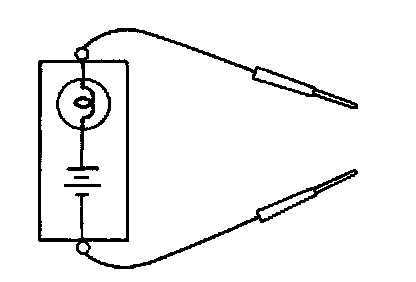A test light consists of a 12 V bulb and lead wires. It is used to check voltages or short circuits.