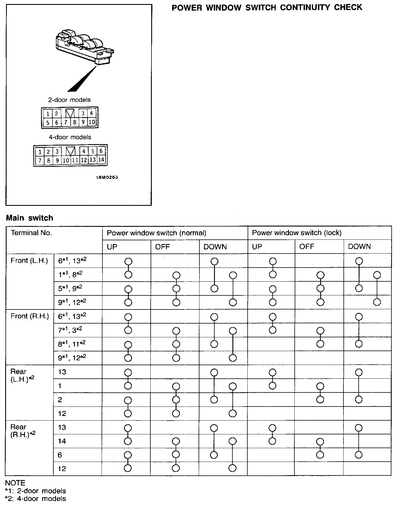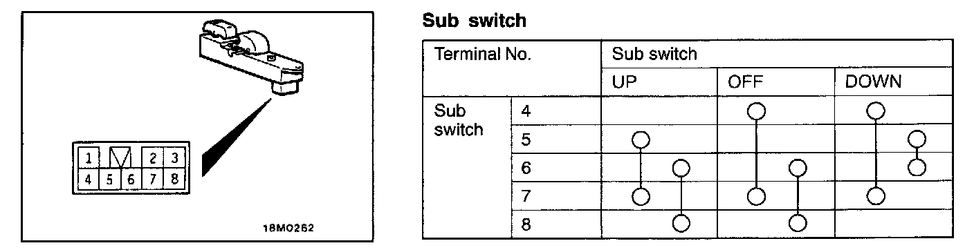 Power Window Switch Continuity Check - Sub Switch:
