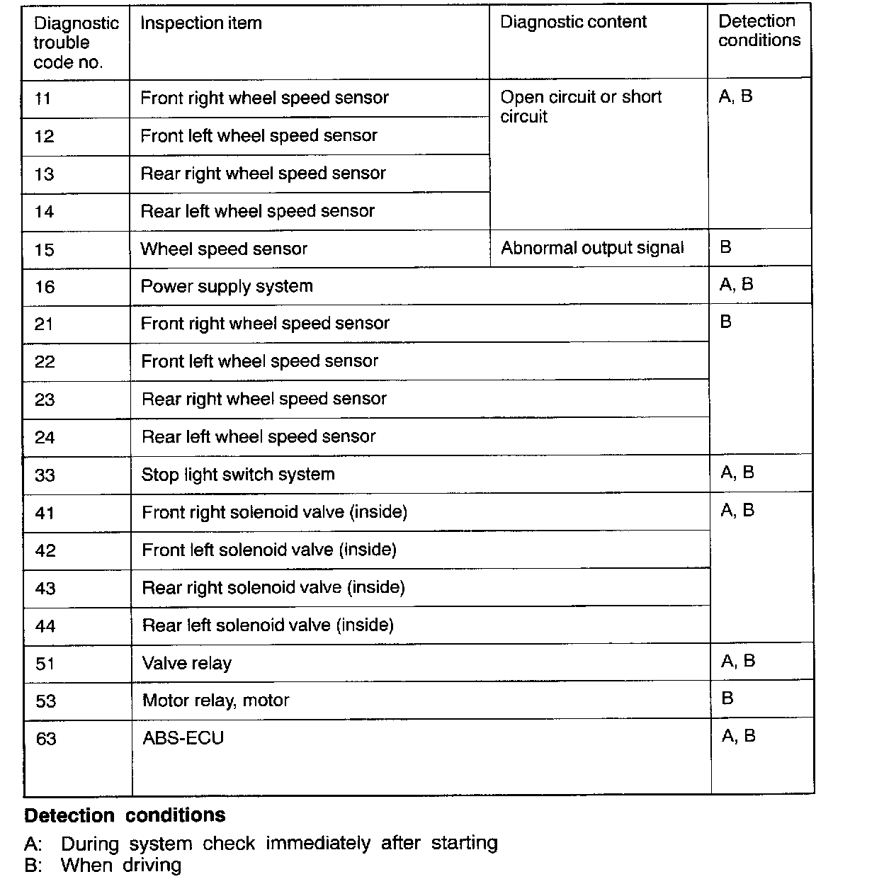 INSPECTION CHART FOR DIAGNOSTIC TROUBLE CODES