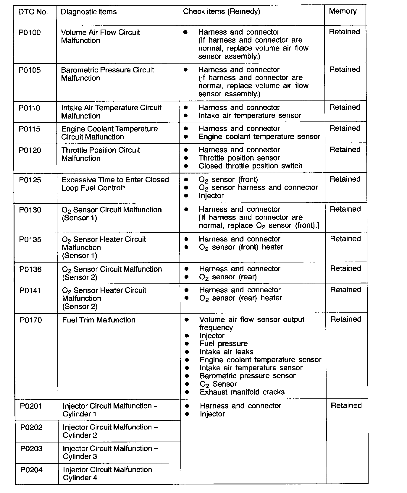 P0100 - P0204: