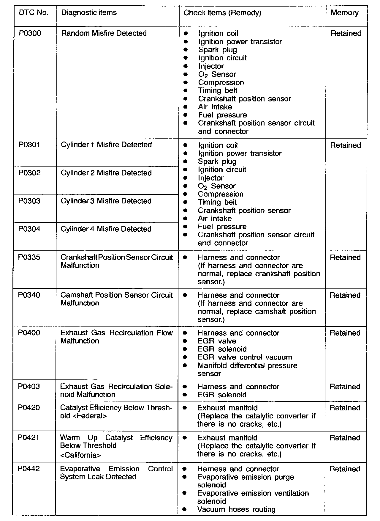 P0300 - P0442: