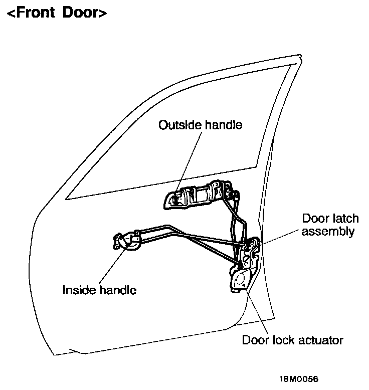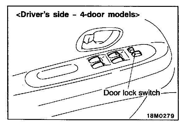 The central door locking system has been used as optional parts on some models. This enables all doors to be locked or unlocked using the door key (driver's side or front passenger's side), the door lock switch (driver's side or front passenger's side) or the inside lock knob (driver's side). (Refer to - ETACS.)