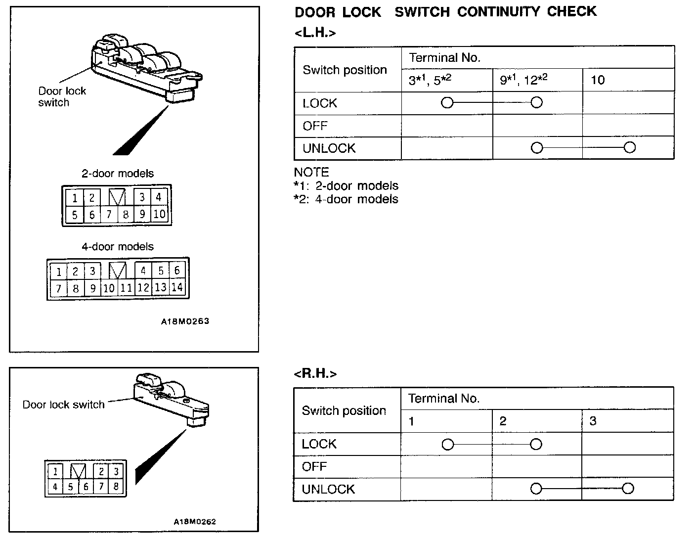 Door Lock Switch Continuity Check:
