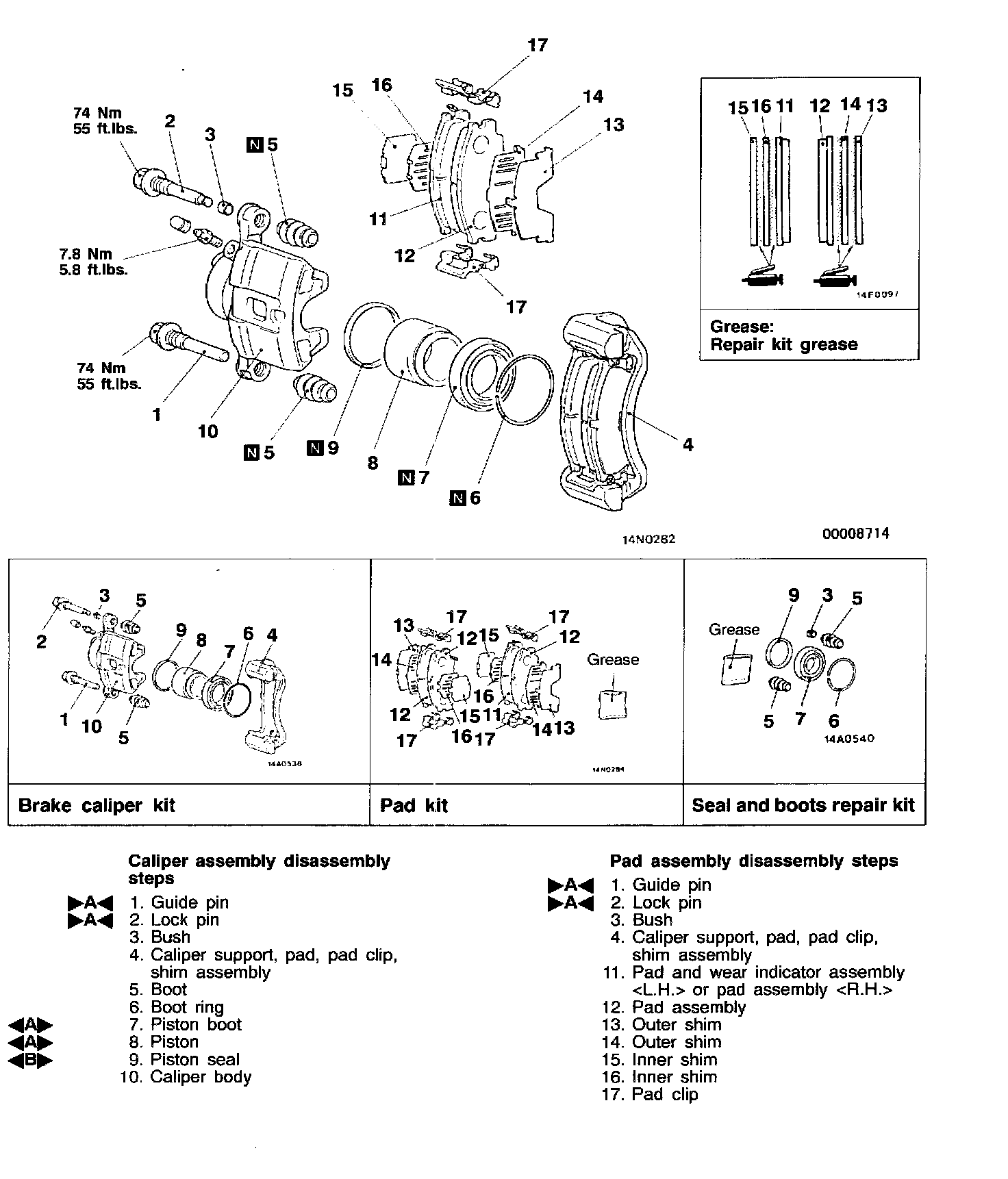 - Check pad for damage or adhesion of grease, check backing metal for damage.