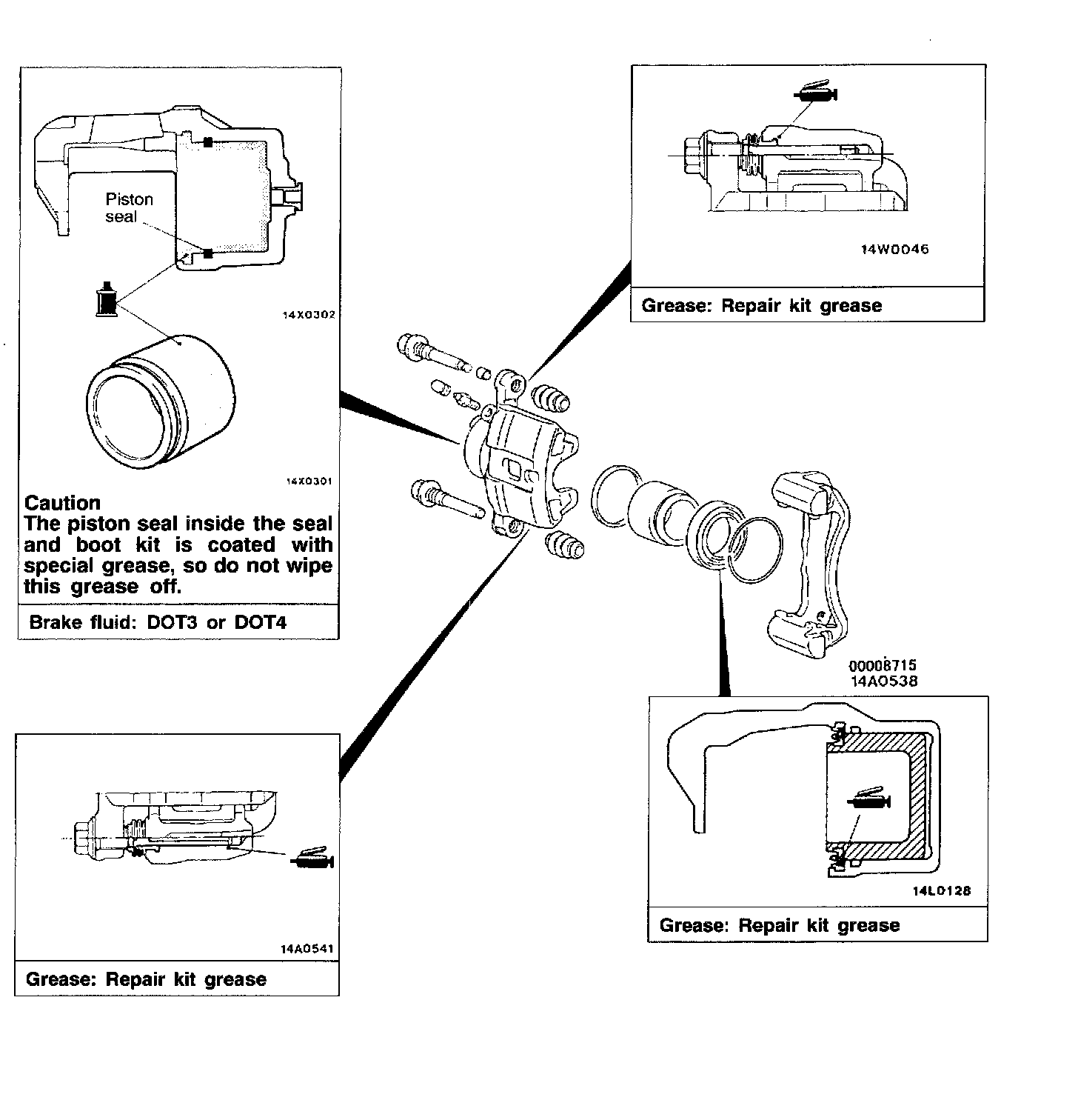 2. Clean piston surface and inner cylinder with trichloroethylene, alcohol or specified brake fluid.