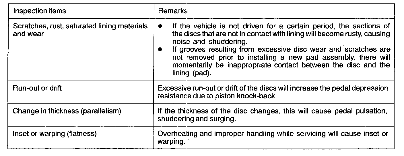 Before re-finishing or re-processing the brake disc surface, the following conditions should be checked.