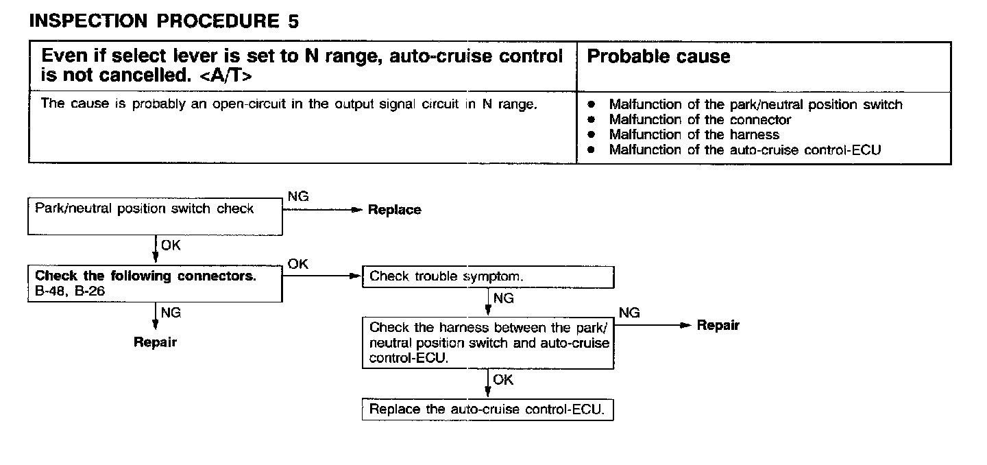 5. Select Lever Is Set to N Range, Cruise Not Cancelled, A/T