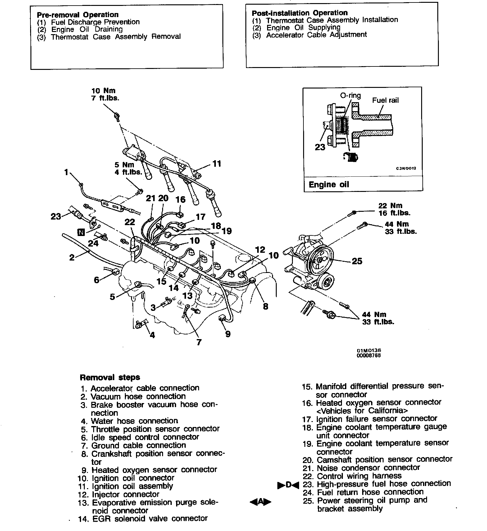 NOTE: Place the removed power steering oil pump in a place where it will not be a hindrance when removing and installing the cylinder head assembly, and tie it with a cord.