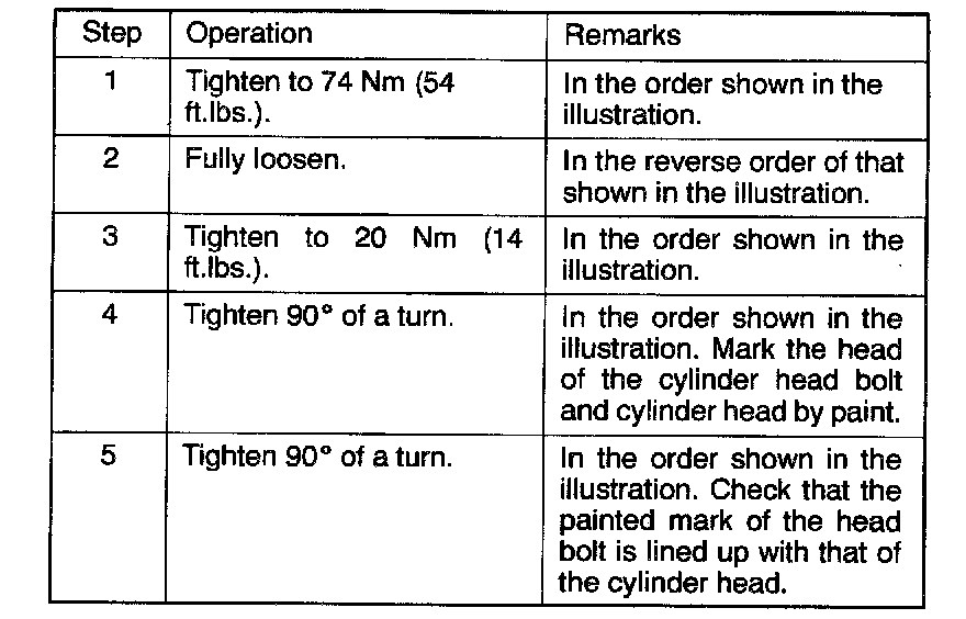 1. Always make a tightening angle just 90°. If it is less than 90°, the head bolt will be loosened.