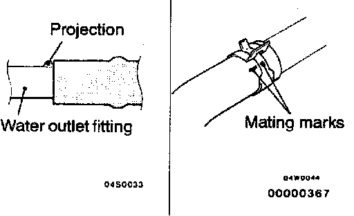 2. Align the mating marks on the radiator hose and hose clamp, and then connect the radiator hose.