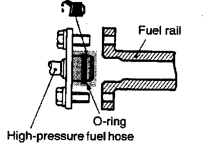 3. If the hose does not turn smoothly, the O-ring is probably being pinched. Disconnect the high-pressure fuel hose and check the O-ring for damage. After this, re-insert the fuel rail and check that the hose turns smoothly.