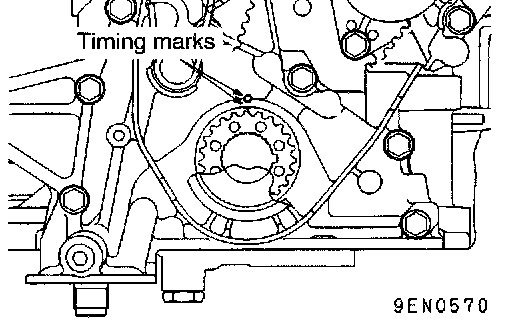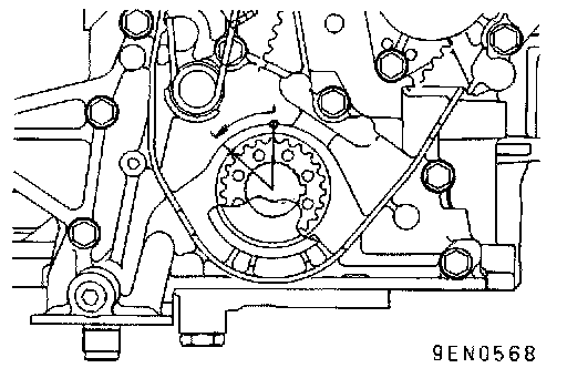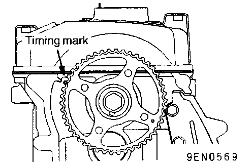 2. Align the camshaft sprocket timing mark with the timing mark on the cylinder head.
