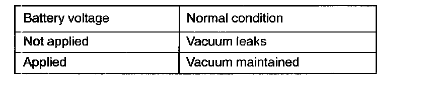 4. Check airtightness by applying a vacuum with voltage applied directly from the battery to the EGR control solenoid valve and without applying voltage.