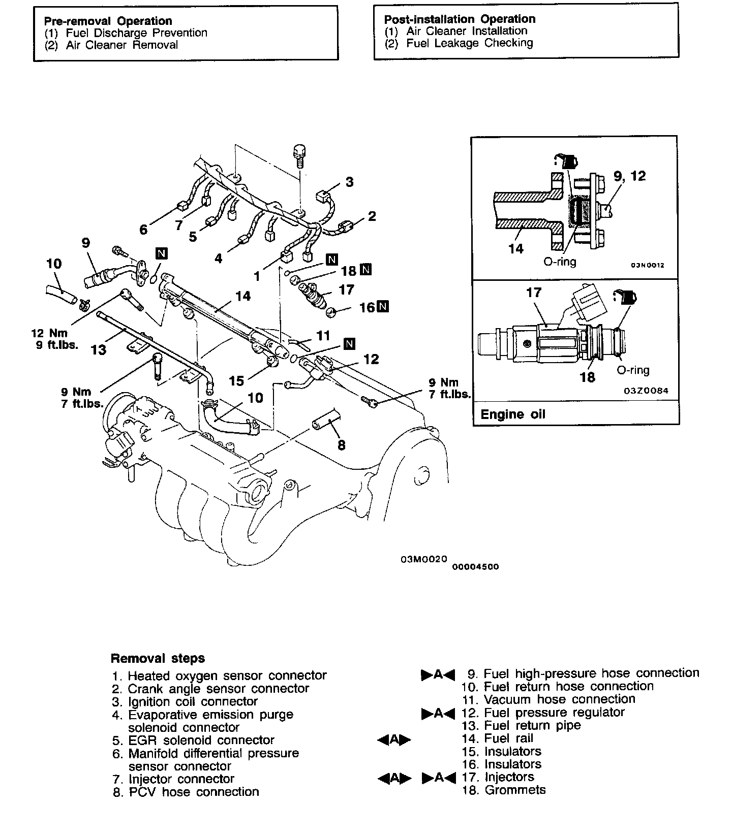 CAUTION: Be sure not to let engine oil enter the fuel rail.
