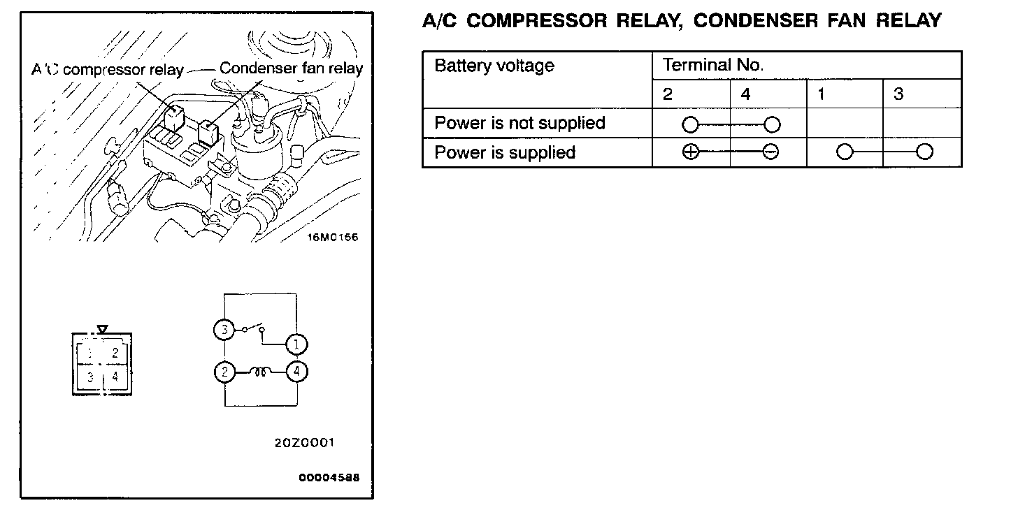Power Relay Check - A/C Compressor Relay, Condenser Fan Relay:
