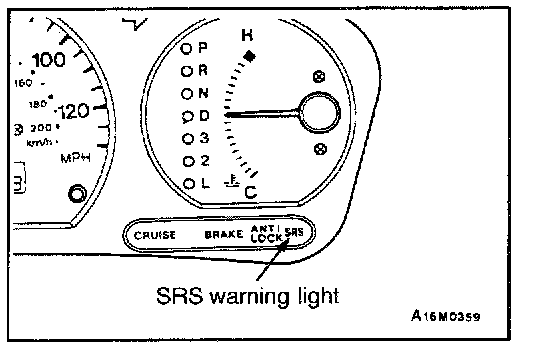 2. Does the "SRS" warning light illuminate for about 7 seconds, and then remain off for at least 5 seconds after turning off?