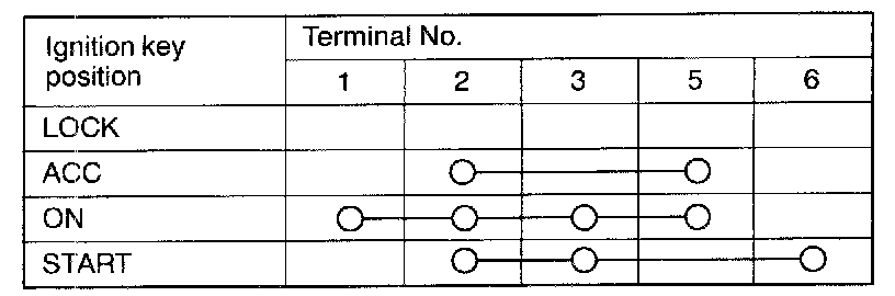 2. Disconnect the wiring connector from the ignition switch and connect an ohmmeter to the switch side connector.