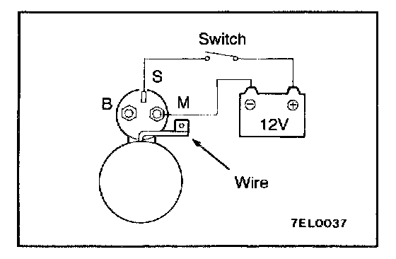 2. Connect a 12 V battery between the S-terminal and the M-terminal.