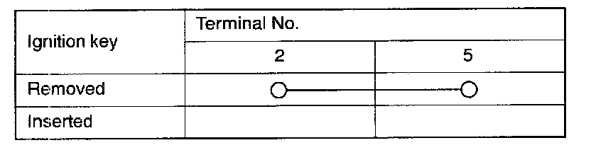 3. Check the continuity when the ignition key is pulled out of and inserted into the steering lock cylinder.