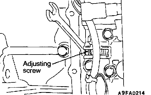 2. Turn the adjusting screw shown in the illustration to adjust the underdrive pressure to the standard value. The pressure increases when the screw is turned to the left.