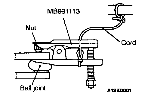 1. Before using the special tool, loosen the tie-rod end mounting nut. Only loosen the nut; do not remove it from the ball joint.