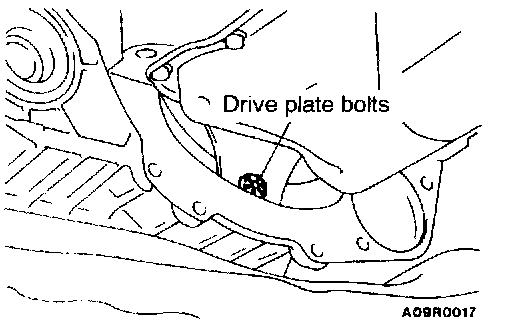 4. Remove the transaxle assembly lower bolts and lower the transaxle assembly.
