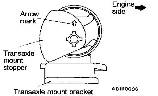 Install the transaxle mount stopper so that the arrow mark points as shown in the illustration.