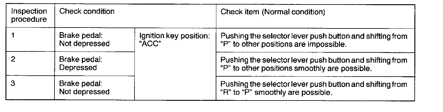 KEY INTERLOCK MECHANISM CHECK1. Carry out the inspection per the chart above.