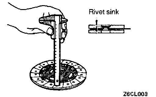 2. Measure the rivet sink and replace the clutch disc if it is Out of specification.