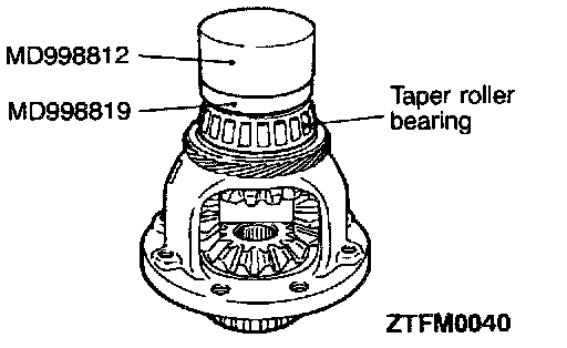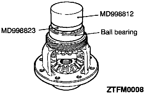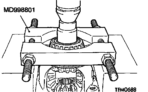 NOTE: When a new side gear is to be installed, mount a medium thickness spacer [0.93 to 1.00 mm (0.0366 to 0.0395 inch)]