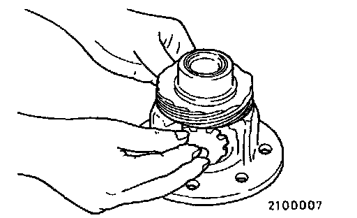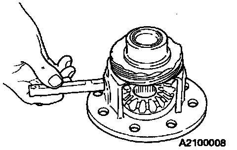 1. After a spacer has been mounted on the back surface of the side gear, install the side gear in the differential case.