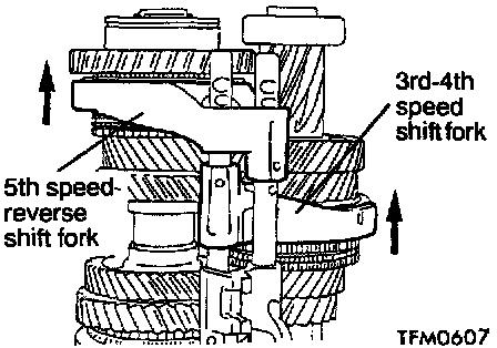 1. Shift the 3rd-4th speed shift fork and 5th speed-reverse shift fork in the direction shown.