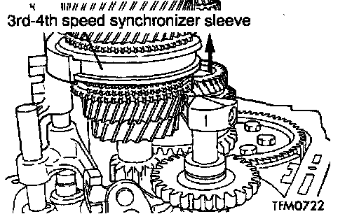 1. Shift the 3rd-4th speed synchronizer sleeve toward the 4th speed side.