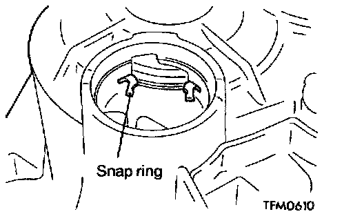 NOTE: Place the transaxle upside down and let the snap ring fit in the groove by taking advantage of the output shaft's own weight.