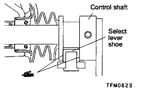 Apply grease to the control shaft sliding portion of the select lever shoe.