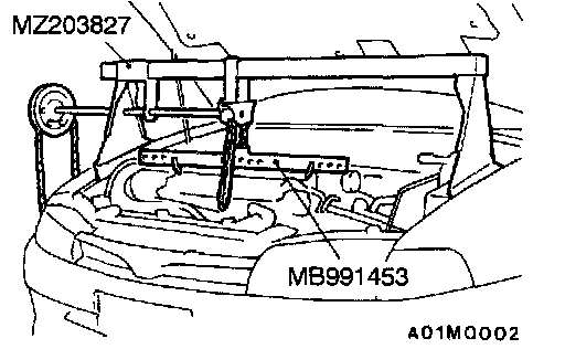Set the special tool to the vehicle to support the engine assembly.