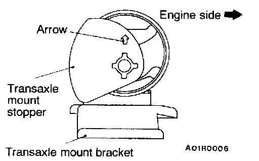Install the transaxle mount stopper so that the arrow points as shown in the illustration.