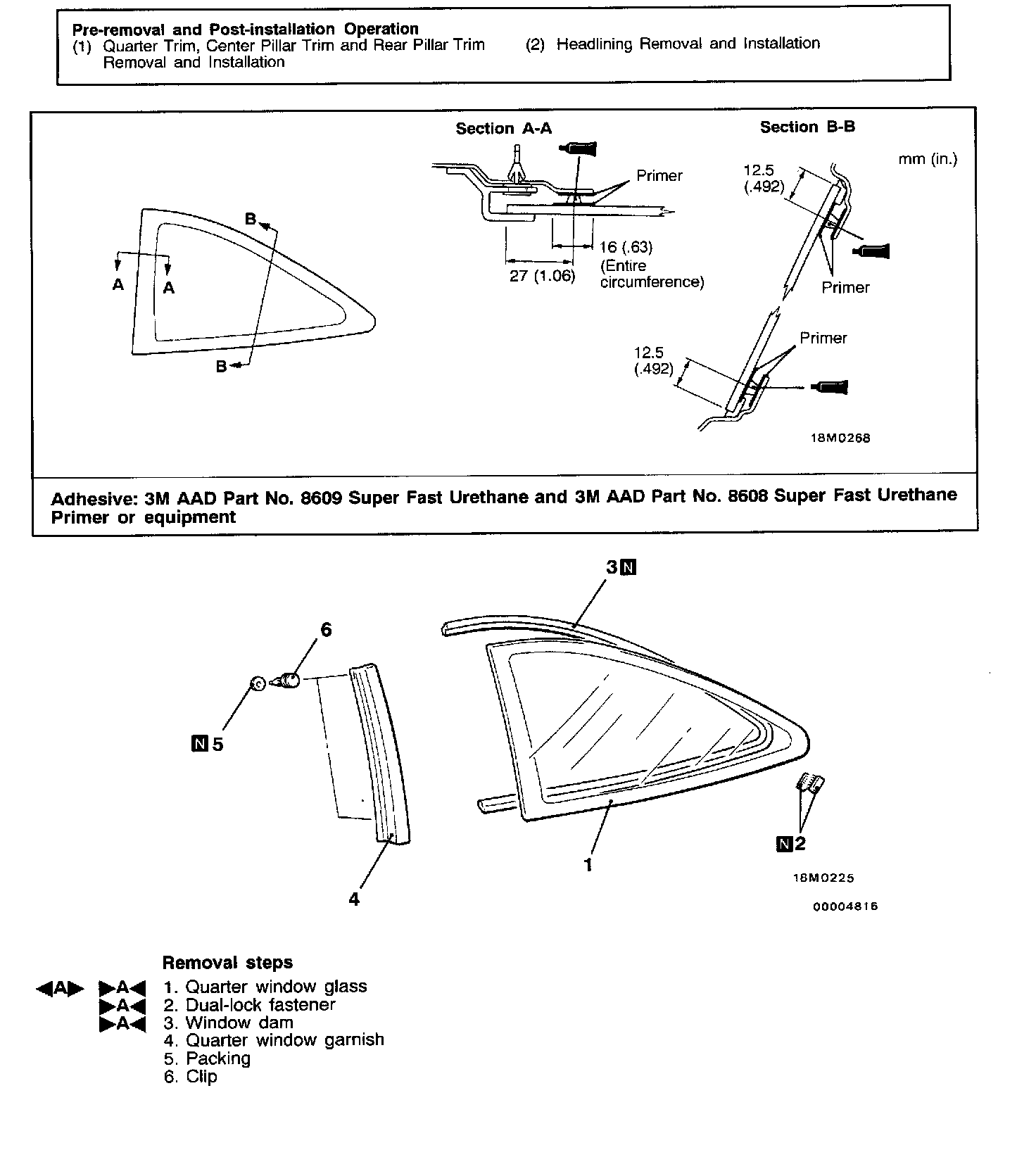]A[ WINDOW DAM/DUAL-LOCK FASTENER/QUARTER WINDOW GLASS INSTALLATION