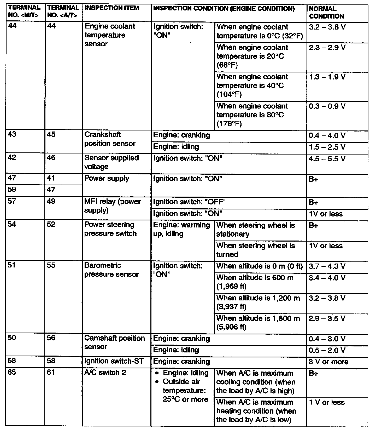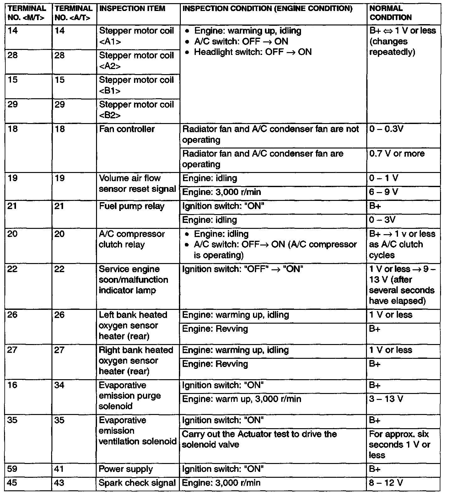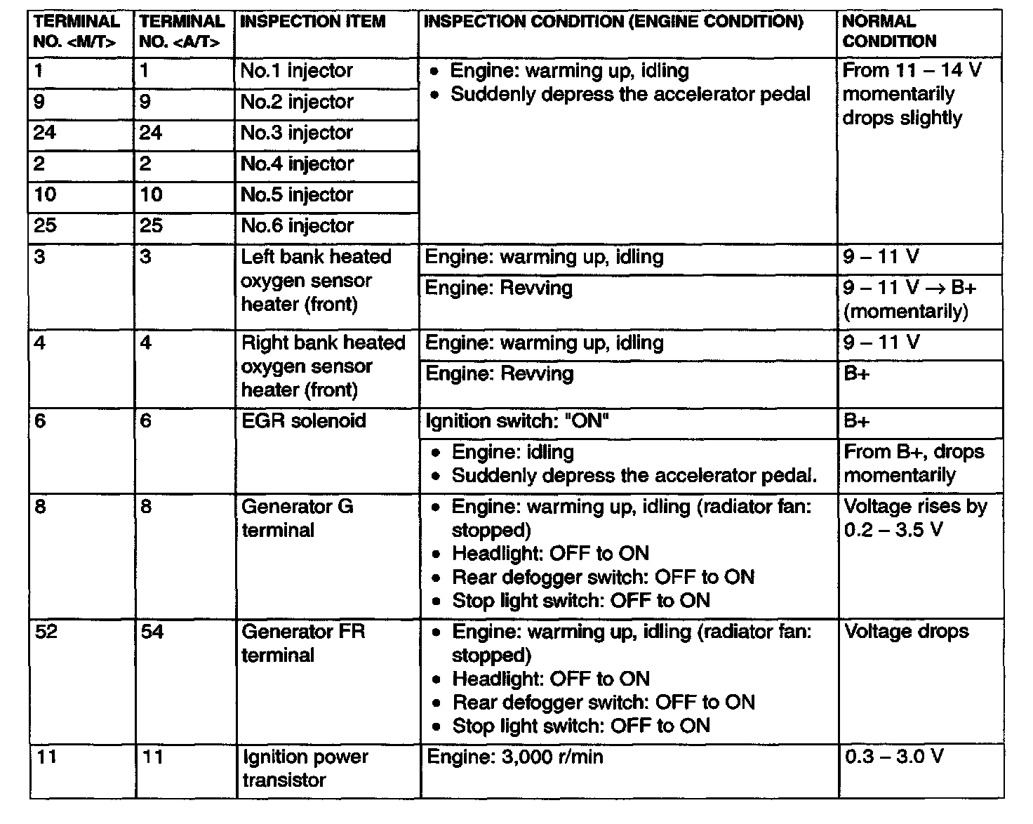 Terminal Voltage Check Chart Part 1: