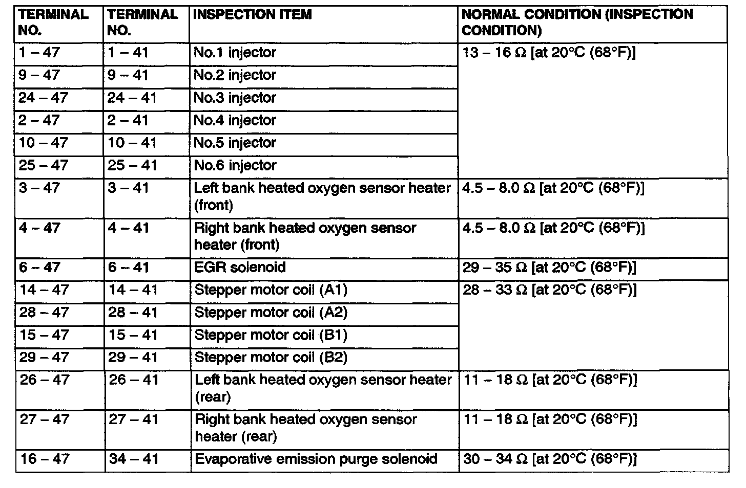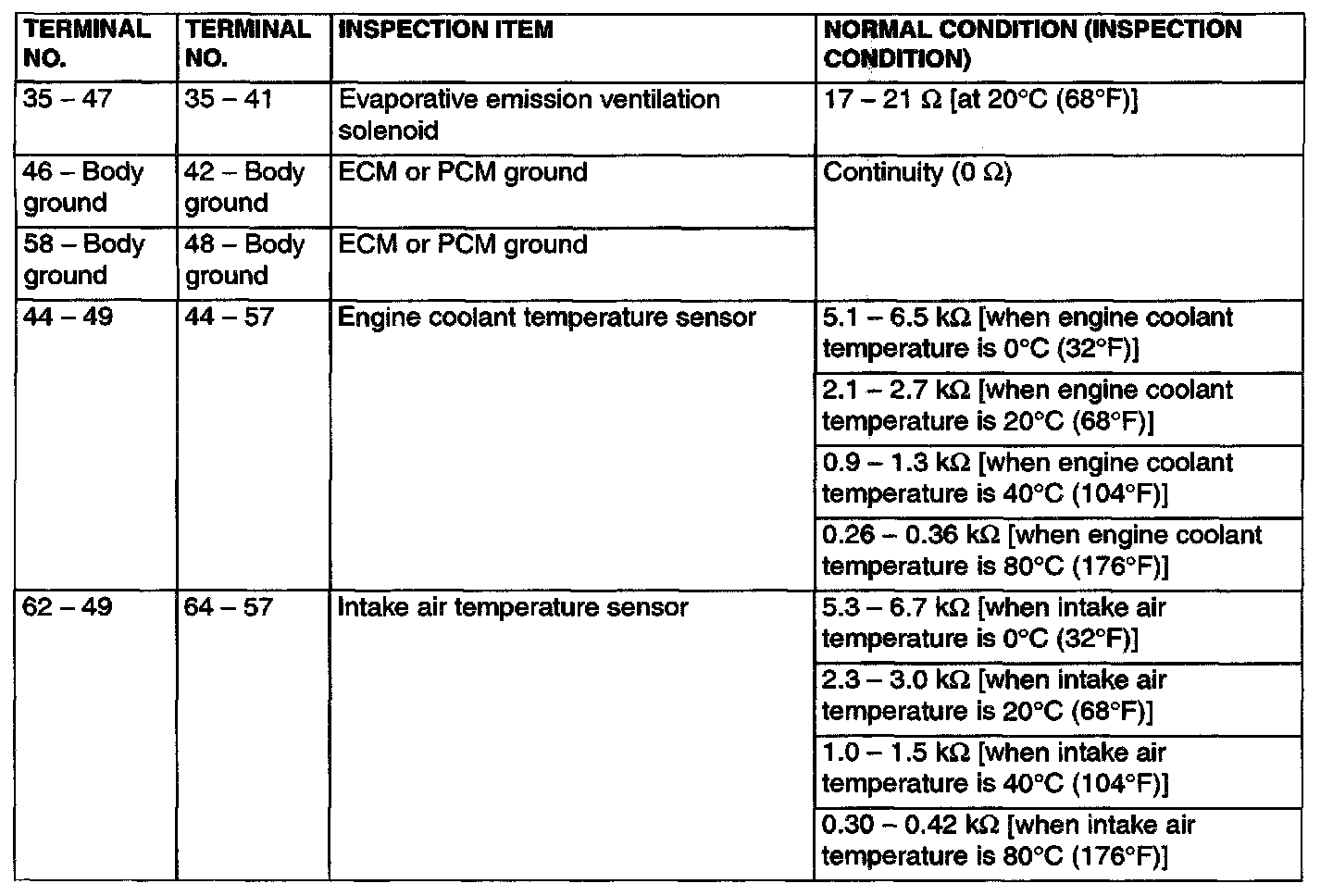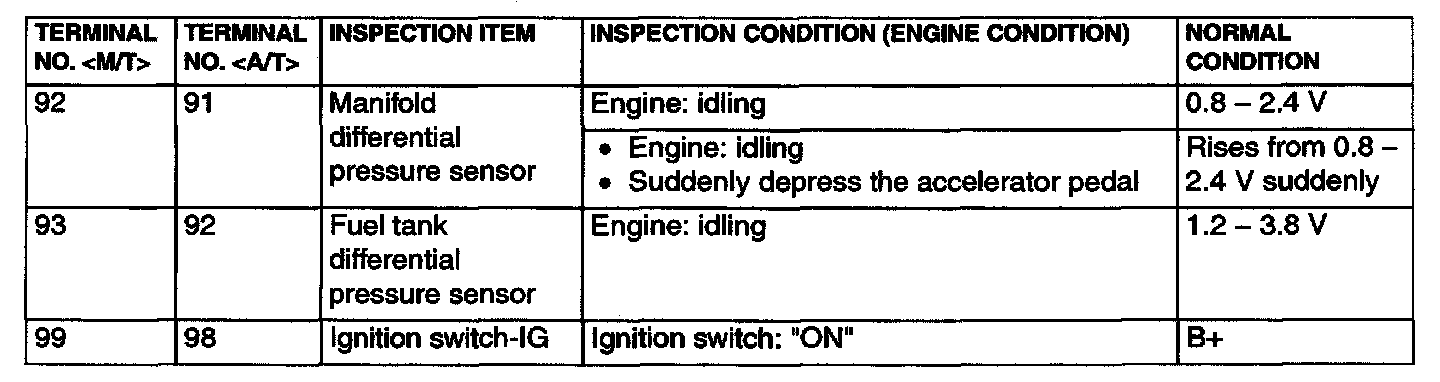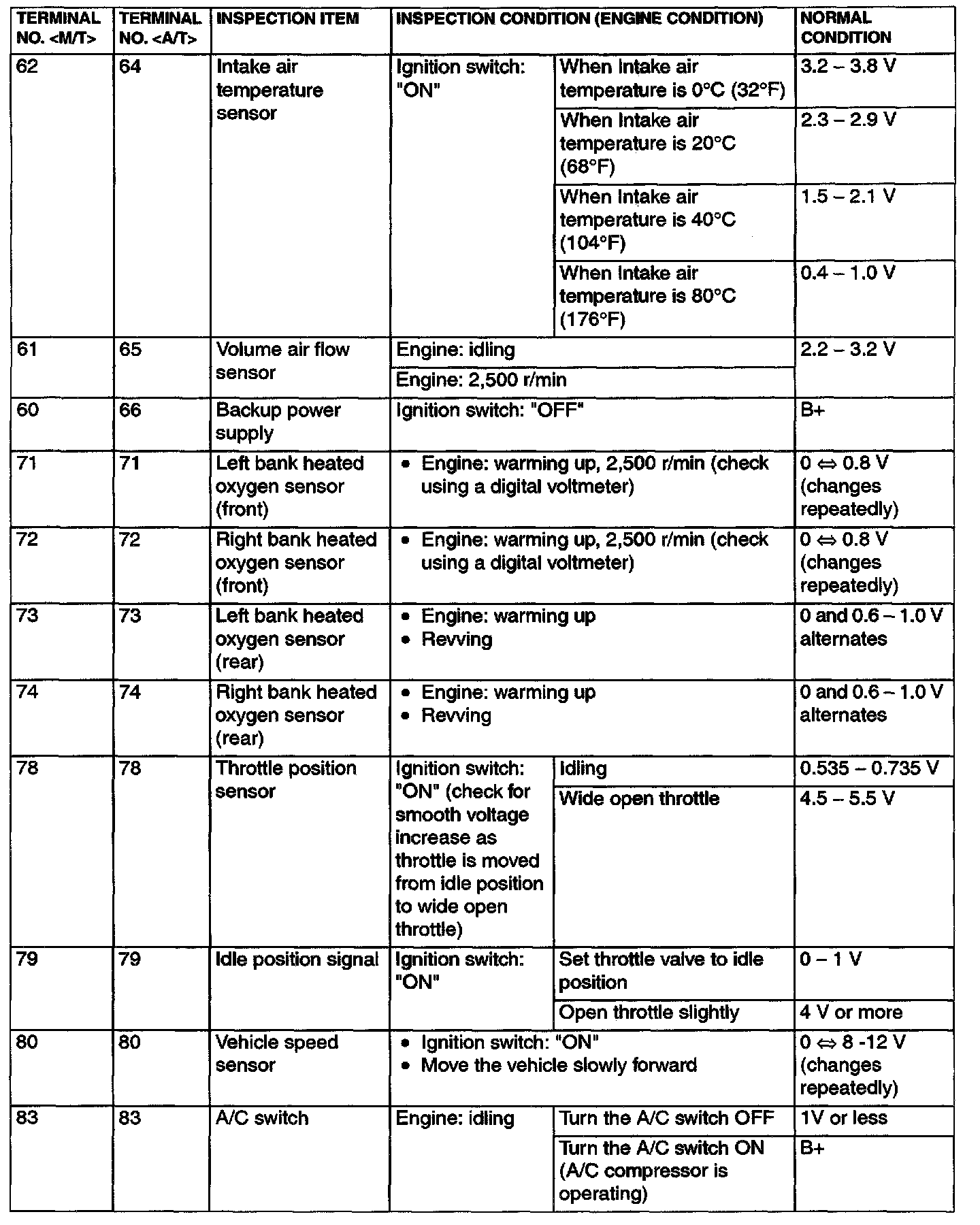 Terminal Voltage Check Chart Part 1: