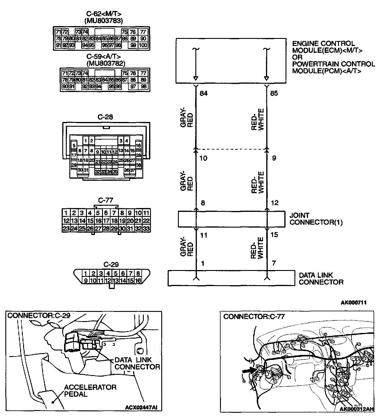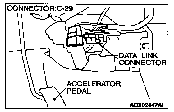 STEP 2. Check for open circuit, short circuit to ground and harness damage between data link connector C-29 terminal 1 and ECM connector C-62 terminal 84