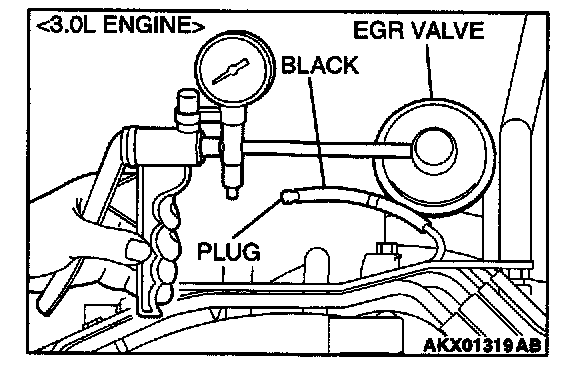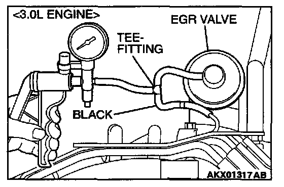1. Disconnect the vacuum hose (black) from the EGR valve, and then connect a hand vacuum pump via the Tee-fitting.