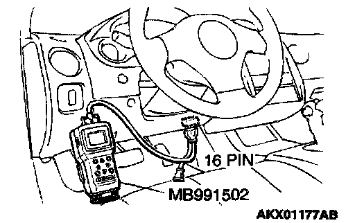 CAUTION: To prevent damage to scan tool MB991502, always turn the ignition switch to the "LOCK" (OFF) position before connecting or disconnecting scan tool MB991502.