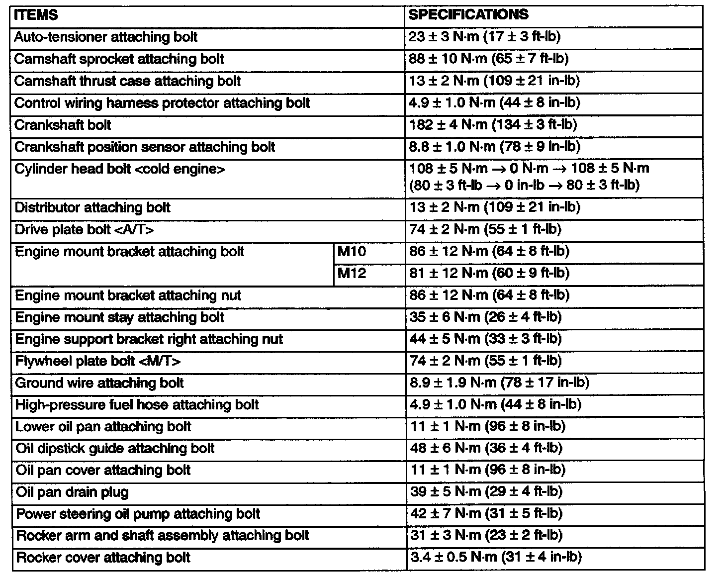 FASTENER TIGHTENING SPECIFICATIONS