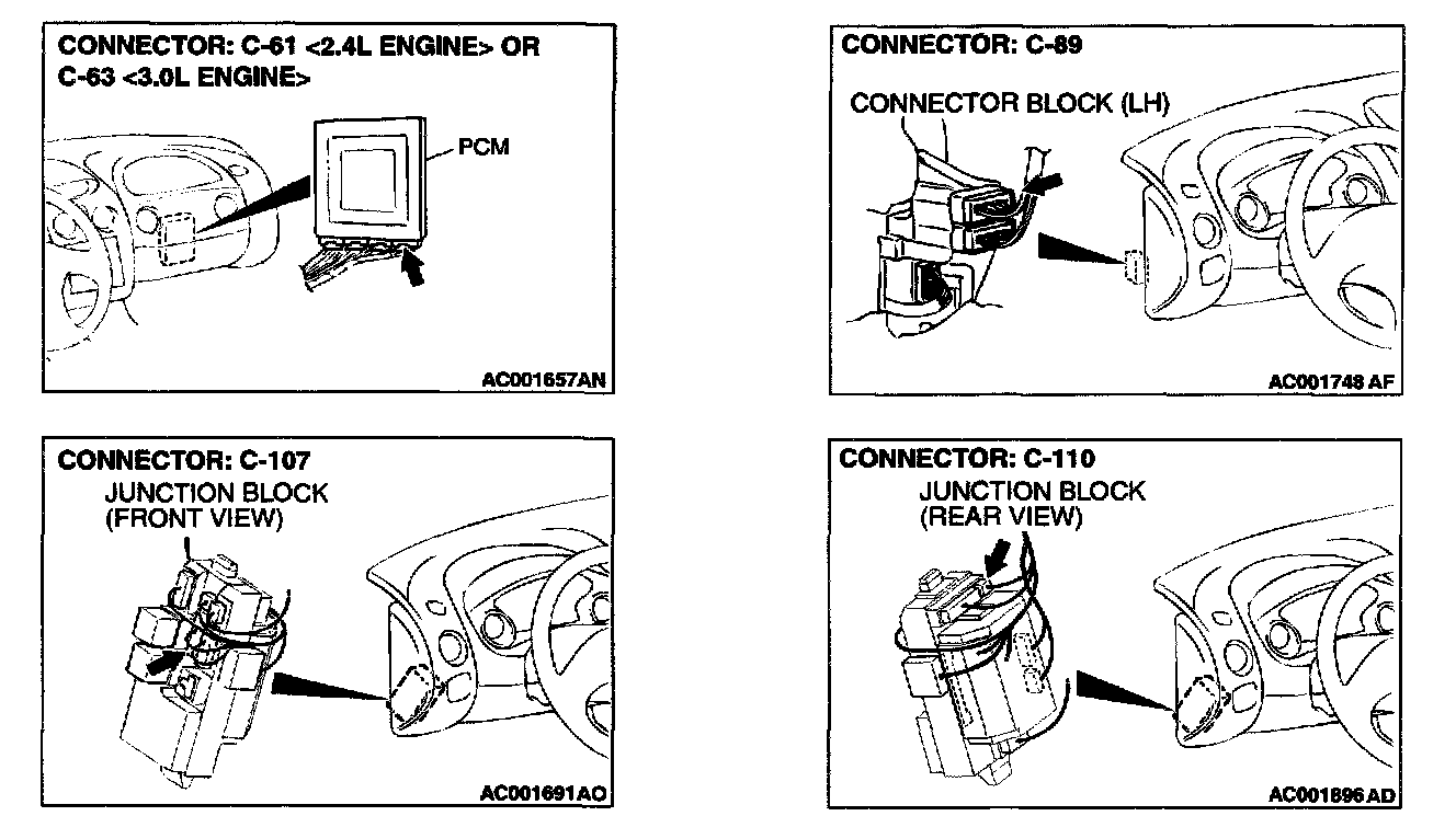 1. Do not disconnect connector C-61 <2.4L Engine> or C-63 <3.0L Engine>.