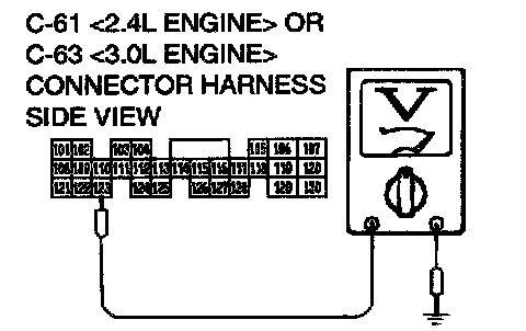 STEP 5. Check the switch output voltage at PCM connector C-61 <2.4L Engine> or C-63 <3.0L Engine> by backprobing.