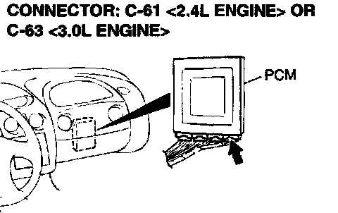 STEP 8: Check connector C-61 <2.4L Engine> or C-63 <3.0L Engine> at PCM for damage.
