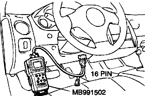 CAUTION: To prevent damage to scan tool MB991502, always turn the ignition switch to "LOCK" (OFF) position before connecting or disconnecting scan tool MB991502.