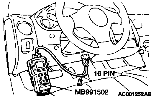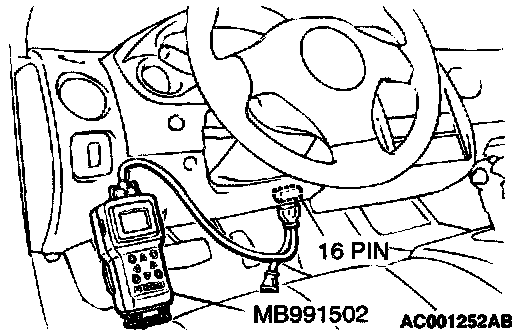 1. Connect scan tool MB991502 to the data link connector.