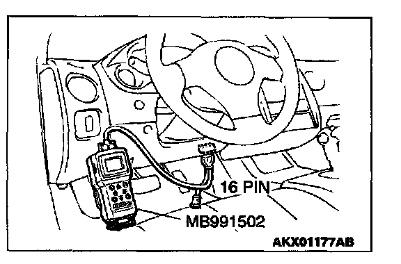 1. Connect scan tool MB991502 to the data link connector.
